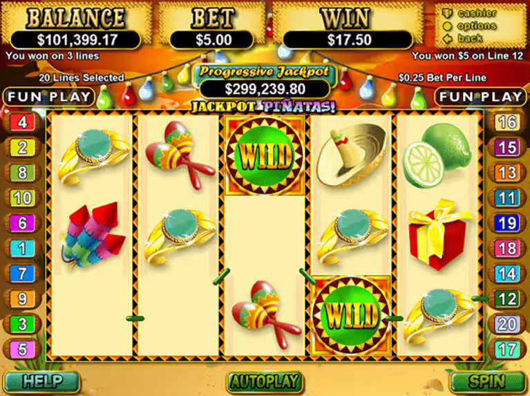 Jackpot Pinatas Slots delivers exactly what its name promises – a festive gaming experience where every spin feels like breaking open a prize-filled piñata. The combination of accessible betting ranges, engaging bonus features, and progressive jackpot potential creates a slot that appeals to casual players and serious gamers alike. With its authentic Mexican theme, generous free spins, and interactive bonus rounds, this Real Time Gaming creation proves that sometimes the best parties are the ones where everyone walks away with prizes.